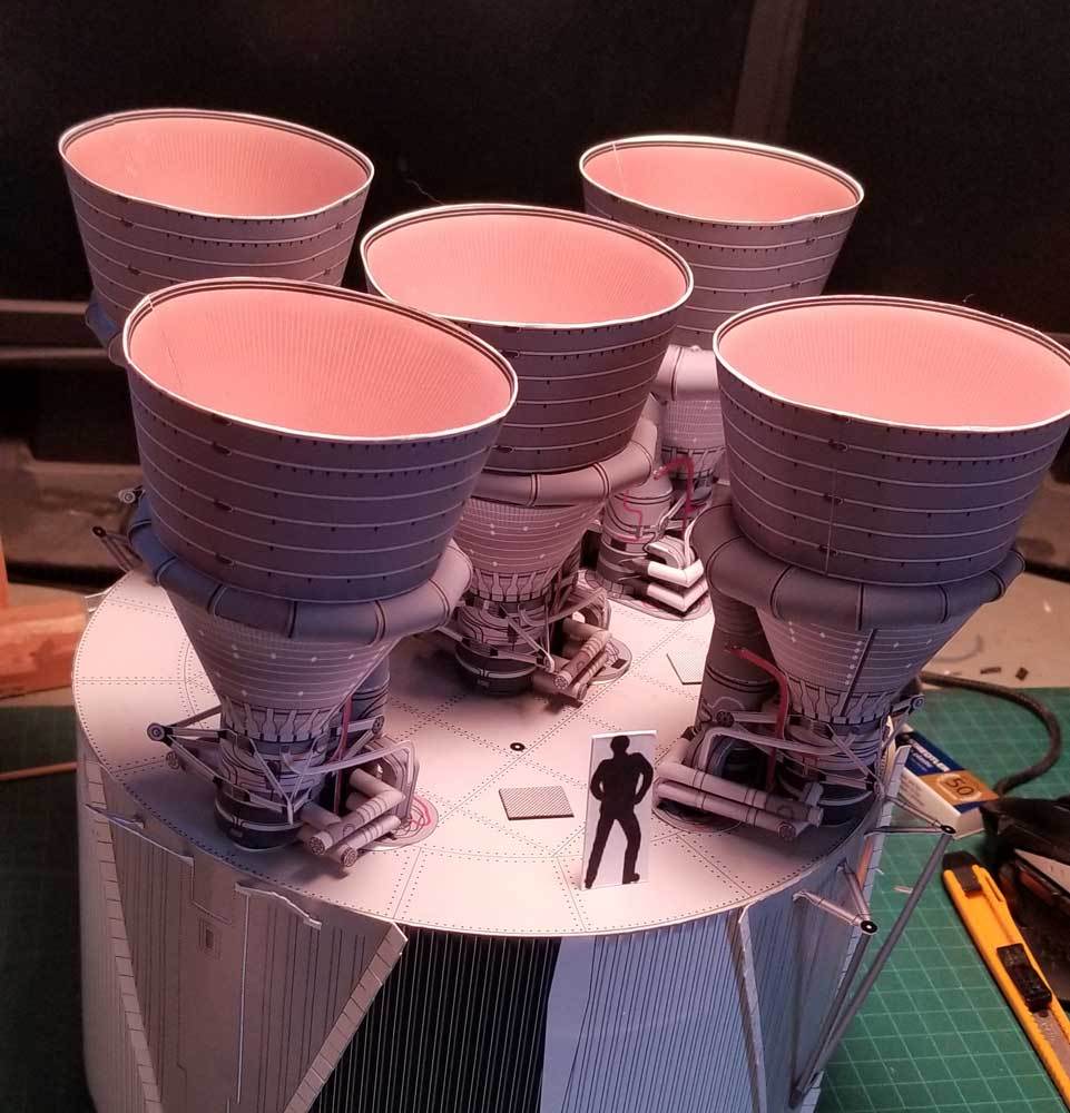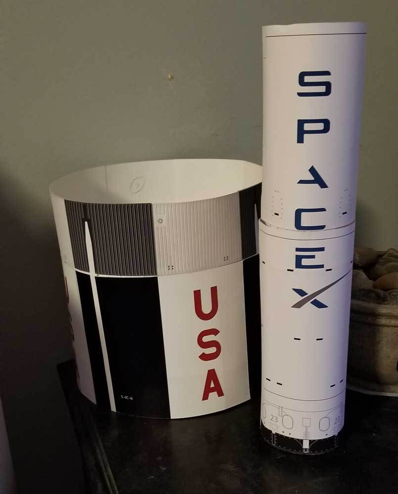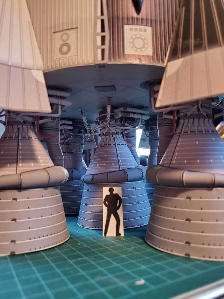 In the pictures, I’ve also added a size reference of SpaceX’s Falcon 9. Both models are modelled in the same scale, so a direct size comparison can be made. The Falcon 9 is powered by nine Merlin engines delivering a paltry 1.7 million pounds of thrust compared to the 7.7 million the Saturn V is capable of. But remember, the Falcon Heavy, which is basically three Falcon 9’s strapped together, can deliver a combined 5.13 million pounds of thrust and the SpaceX Starship will be capable of a staggering 16 million pounds of thrust! And all of SpaceX’s designs are reusable.